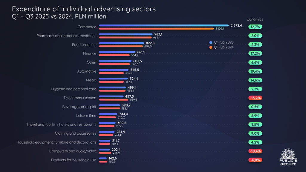 According to analysts at Publicis Groupe, the advertising market in Poland declined by 6.6% year-on-year after three quarters of 2025. As many as 13 sectors increased advertising budgets, while three made reductions.