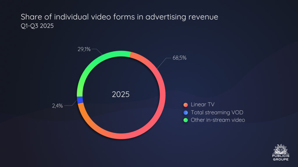 Chart 5. Share of individual video forms in advertising revenue after three quarters of 2025.